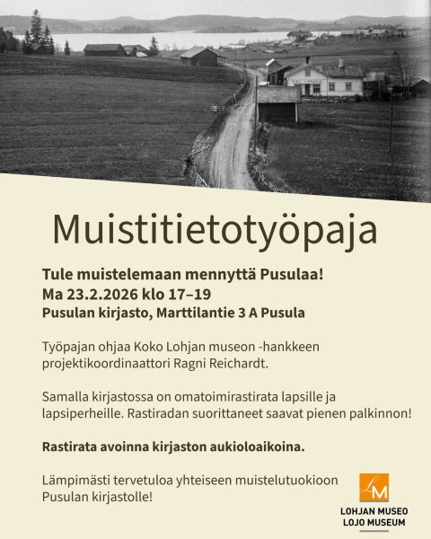 | Muistitietopaja | Marttilantie 3 (kirjasto) | 23.2.2026 | 17:00 | 19:00 |
